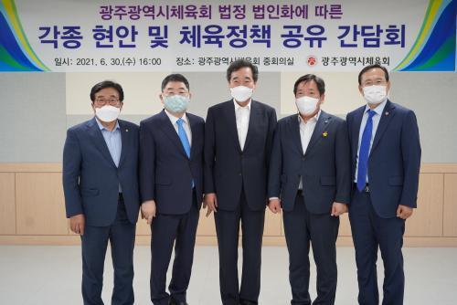 ÀÌ¿¡ ÀÌ»óµ¿ Ã¼À°È¸ÀåÀº ¡°À̳«¿¬ Àü ÃѸ®¿Í ÇÔ²² ±¤ÁÖ Áö¿ª üÀ°´ÜüÀÇ ¸ñ¼Ò¸®¸¦ µè°í ±¤ÁÖÀÇ Ã¼À°Á¤Ã¥À» °øÀ¯ÇÔÀ¸·Î½á ±¤ÁÖüÀ°À» ºñ·ÔÇÑ Áö¹æÃ¼À°ÀÌ µµ¾àÇÒ ¼ö ÀÖ´Â ±âȸ°¡ µÇ±â¸¦ ±â´ëÇÑ´Ù.¡±¸ç ¡°½Ã¹Î°ú ¼±¼ö¸¦ À§ÇÑ ´Ù¾çÇÑ »ç¾÷À» ÆîÄ¡°í °ú°Å¸¦ ´ä½ÀÇÏÁö ¾Ê´Â ¡®»ý°¢ÀÇ Àüȯ¡¯À¸·Î ±ú¾îÀִ üÀ°È¸¸¦ ¸¸µé¾î °¥ °ÍÀ» ¾à¼ÓÇÑ´Ù.¡±°í ¸»Çß´Ù.