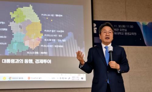 ° Àü ¼ö¼®Àº 30ÀÏ ¿ÀÀü ±¤ÁÖ±³À°´ëÇб³ ±³À°¸Åü°ü¿¡¼ ´ëÇлý 80¸íÀ» ´ë»óÀ¸·Î ¡®Ã»³â°ú ÇÔ²²ÇÏ´Â °±âÁ¤ÀÇ ÀþÀº Talk¡¯ °¿¬À» ÁøÇàÇß´Ù.
