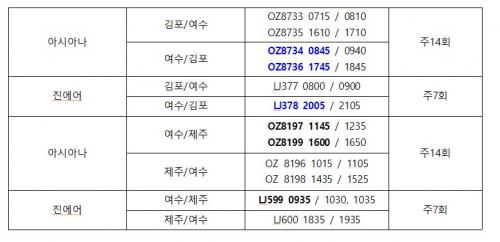 ´õºÒ¾î¹ÎÁÖ´ç ±èȸÀç ÀÇ¿ø(Àü³² ¿©¼ö½ÃÀ»)Àº 3¿ù 26ÀϺÎÅÍ 10¿ù 28ÀϱîÁö Àû¿ëµÇ´Â ¿ÃÇØ ±¹³»¼± ÇÏ°è ¿îÇ×½ºÄÉÁì¿¡ µû¶ó ¿©¼ö¹ß ±èÆ÷Çà Ç×°øÆíÀÌ ¿ÀÀü 8½Ã´ë, ¿ÀÈÄ 5½Ã´ë, Àú³á 8½Ã´ë·Î ¹èÄ¡µÉ ¿¹Á¤À̶ó°í ¹àÇû´Ù.