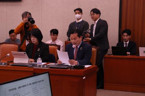 ÇÑÆí, 3ÀÏ ¿ÀÀü ¿¸° ±¹È¸ ³óÇØ¼öÀ§ ÀüüȸÀÇ¿¡¼ ÁÖöÇö ÀÇ¿øÀ» ºñ·ÔÇÑ ¹ÎÁÖ´çÀÇ ¿ä±¸·Î 11ÀÏ¿¡ ¾ç°î°ü¸®¹ý °³Á¤¾È¿¡ ´ëÇÑ Çö¾È ÁúÀǸ¦ °³ÃÖÇϰí, Á¤È²±Ù ³ó½ÄǰºÎÀå°ü°ú ±èÈ«»ó Çѱ¹³óÃ̰æÁ¦¿¬±¸¿øÀåÀ» ÁõÀÎÀ¸·Î äÅÃÇϱâ·Î ÀǰáÇß´Ù.