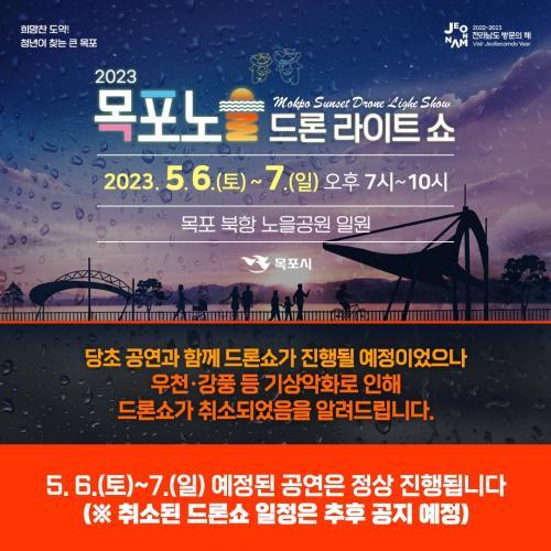 ÇÏÁö¸¸ °ÇÑ ºñ¿Í º¶ô, µ¹Ç³ µî ±â»ó ¾ÇȰ¡ ¿¹º¸µÊ¿¡ µû¶ó °¡Á¤ÀÇ ´Þ°ú Àü¶ó³²µµ ¹æ¹®ÀÇ ÇØ µîÀÇ ÁÖÁ¦·Î ÁغñÇÑ µå·Ð¼î´Â Ãë¼ÒµÆ´Ù.