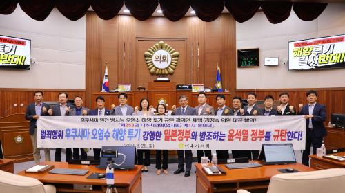 ³ªÁÖ½ÃÀÇȸ´Â Áö³ 8¿ù 24ÀÏ ¿ÀÈÄ 1½Ã°æ ÀϺ» Á¤ºÎ°¡ ÈÄÄí½Ã¸¶ ¿øÀü ¹æ»ç´É ¿À¿°¼ö ÇØ¾ç Åõ±â¸¦ °ÇàÇÏÀÚ ¡®ÈÄÄí½Ã¸¶ ¿øÀü ¹æ»ç´É ¿À¿°¼ö ÇØ¾ç Åõ±â ±Ôź ¼º¸í¼¡¯¸¦ ±ä±Þ ¹ßÇ¥ÇÑ µ¥ À̾î, ±èÁ¤¼÷ ÀÇ¿øÀÌ ´ëÇ¥¹ßÀÇÇØ ¹ÝÀηûÀû ¹üÁËÇàÀ§¸¦ ÀÚÇàÇÑ ÀϺ» Á¤ºÎ¿Í À̸¦ ¹æÁ¶ÇÏ°í ¹«´ÉÇÑ À±¼®¿ Á¤ºÎ¸¦ ±ÔźÇÏ´Â °áÀǾÈÀ» ÀǰáÇß´Ù.
