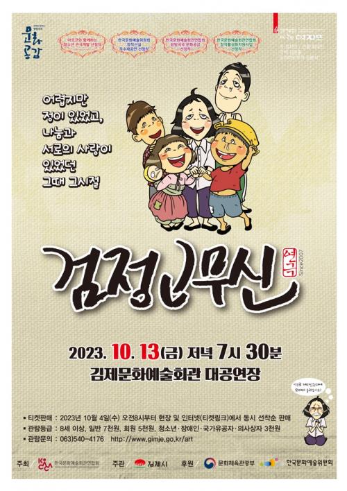 Çѱ¹¹®È¿¹¼úȸ°ü¿¬ÇÕȸ°¡ ÁÖÃÖÇÏ°í ±èÁ¦½Ã°¡ ÁÖ°üÇÏ¸ç ¹®ÈüÀ°°ü±¤ºÎ¿Í Çѱ¹¹®È¿¹¼úÀ§¿øÈ¸°¡ ÈÄ¿øÇÏ¿© ÁöÀÚü Áö¿ªÁֹε鿡°Ô ¿¹¼úÀÌ ÁÖ´Â ±â»Ý°ú ¹®È¿¹¼úÀ» ÅëÇÑ ÇູÀ» ´©¸± ¼ö ÀÖµµ·Ï ¸¶·ÃÇØ ½Ã¹Îµé¿¡°Ô ÇÑÃþ Áñ°Å¿î °ø¿¬À» ±èÁ¦¹®È¿¹¼úȸ°ü ´ë°ø¿¬Àå¿¡¼ ÁøÇàÇÑ´Ù.