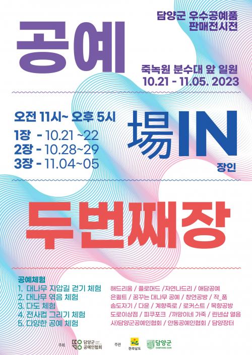 ÇÑÆí, ´ã¾ç±º°ø¿¹¼¾ÅÍ, ¡®ÀåÀΰ¢¡¯¿¡¼µµ 10¿ù 21ÀϺÎÅÍ 11¿ù 6ÀϱîÁö ´ã¾ç±º°ø¿¹ÀÎÇùȸ ȸ¿øÀüÀÌ ¿·Á 50¿© Á¡ÀÇ ¿ì¼öÇÑ Áö¿ªÀÇ °ø¿¹ ÀÛǰÀ» °¨»óÇÒ ¼ö ÀÖ¾î ±â´ë¸¦ ¸ðÀ¸°í ÀÖ´Ù.