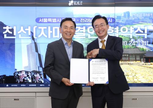 [½Åµ¿¾Æ¹æ¼Û °­³²=À̽ŵ¿±âÀÚ]°­³²±¸´Â 24ÀÏ °­³²±¸Ã»¿¡¼­ Àü³² ³ªÁÖ½Ã¿Í Ä£¼±°á¿¬À» ü°áÇß´Ù. ¾ç ±â°üÀº Áֹκ¹Áö Çâ»ó°ú °øµ¿¹ßÀüÀ» À§ÇÑ »óÈ£ ±³·ù¡¤Çù·ÂÀ» ¾à¼ÓÇß´Ù.