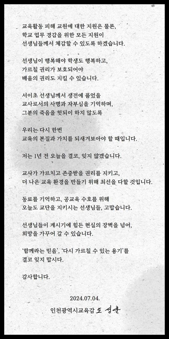 ±×·¯¸é¼ "¸ðµç ±³»ç°¡ ¾ÈÀüÇϰí Á¸Áß¹ÞÀ¸¸ç ±³À°¿¡ Àü³äÇÒ ¼ö ÀÖ´Â Çб³ ÇöÀåÀ» ¸¸µé±â À§ÇØ ¼ÀÌÃÊ ±³»çÀÇ Èñ»ýÀ» ÀØÁö ¾Ê°Ú´Ù"°í ¸»Çß´Ù.
