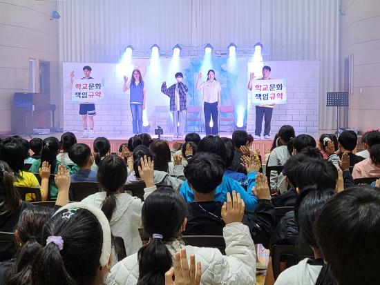 ƯÈ÷ °ø¿¬Àº ·¹Å©¸®¿¡À̼Ç, ÆÛÆ÷¸Õ½º ¿ä¼Ò¸¦ °áÇÕÇÑ º¹ÇÕÇü ÄܼƮ·Î ±¸¼ºµÇ¾î ÀÖÀ¸¸ç, ÇлýµéÀÇ Èï¹Ì¸¦ À¯µµÇϰí ÀÚ¿¬½º·´°Ô Çб³Æø·Â ¿¹¹æ ¸Þ½ÃÁö¸¦ ³»¸éÈÇÒ ¼ö ÀÖµµ·Ï ±¸¼ºµÇ¾ú´Ù. °ø¿¬ ½Ã°£Àº 40~50ºÐ °¡·®À¸·Î, °ø¿¬ ÈÄ¿¡´Â ±³Á÷¿ø°ú ÇÔ²² °£´ÜÇÑ Çǵå¹é ½Ã°£µµ ¸¶·ÃµÈ´Ù.