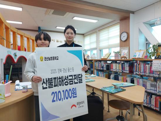 °ü»ê³²ÃÊ´Â ±³³»¿¡¼ Áö¼ÓÀûÀ¸·Î ¡®³ª´®°ú ¹è·Á¡¯¸¦ ÁÖÁ¦·Î ÇÏ´Â Àμº ±³À° Ȱµ¿À» ÆîÄ¡°í ÀÖÀ¸¸ç, ÇлýµéÀº Æò¼Ò ¾Æ²¸ ¾´ ¿ëµ·À» ÀÚ¹ßÀûÀ¸·Î ¸ð¾Æ Á¤¼º ¾î¸° ¼º±ÝÀ» ¸¶·ÃÇß´Ù. ¼º±ÝÀº ÀçÇØ±¸È£Çùȸ¸¦ ÅëÇØ »êºÒ ÇÇÇØ Áö¿ª ÁֹεéÀ» À§ÇØ Àü´ÞµÆ´Ù.