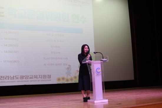 ¿¬¼ö´Â ¡®Çб³¿î¿µÀ§¿øÈ¸ÀÇ ÀÌÇØ¡¯¿Í ¡®AI ½Ã´ëÀÇ ¿Ã¹Ù¸¥ Ȱ¿ë¡¯ µÎ °³ ¼¼¼ÇÀ¸·Î ±¸¼ºµÆ´Ù. ù °ÀÇ¿¡¼´Â Çб³¿î¿µÀ§¿øÈ¸ÀÇ ±ÇÇѰú Ã¥¹«, ¿î¿µÀÇ ±âº» ¹æÇâÀ» Áß½ÉÀ¸·Î, ±³À°°øµ¿Ã¼ÀÇ ´Ù¾çÇÑ ÀǰßÀ» Á¸ÁßÇÏ°í ¹ÎÁÖÀûÀÎ ÀÇ»ç°áÁ¤À» ½ÇõÇÏ´Â ÀÚ¼¼ÀÇ Á߿伺À» °Á¶Çß´Ù.