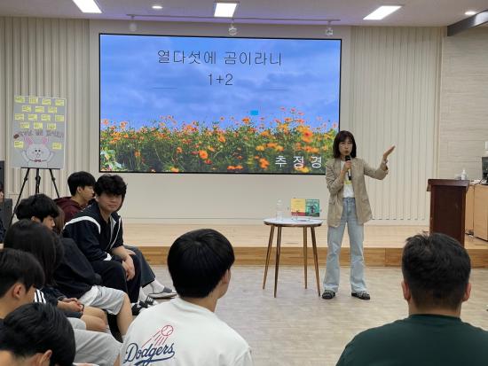 ÃÖ¼ö°æ ±³°¨Àº ¡°»çÃá±â¶ó´Â ÇÑ ÅͳÎÀ» Áö³ª°í Àִ û¼Ò³â±âÀÇ ¿ì¸® Çлýµé¿¡°Ô Ã¥°ú ÀÛ°¡´ÔÀÇ °­¿¬ÀÌ µû¶æÇÑ À§·Î¹Þ´Â ½Ã°£À̶ó ÁÁ¾Ò´Ù. ¾ÕÀ¸·Îµµ ÀÌ·¯ÇÑ µ¶¼­ Àι®±³À°À» ÅëÇØ ÇлýµéÀÌ ³»ÀûÀ¸·Î ¼ºÀåÇÏ°í »îÀ» ¼ºÂûÇÏ¸ç ¾ÕÀ¸·Î ÇÑ ¹ß¦ ´õ ³ª¾Æ°¥ ¼ö ÀÖµµ·Ï Áö¿øÀ» ¾Æ³¢Áö ¾Ê°Ú´Ù.¡±°í ÀüÇß´Ù.