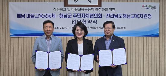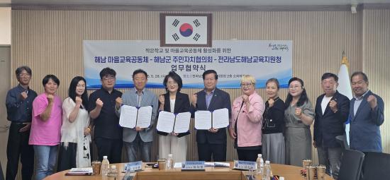 ÀÌÀÚ¿µ ±³À°ÀåÀº Áö¿ª ¼Ò¸ê À§±âÀÇ ¾î·Á¿î ½Ã±âÀÓ¿¡µµ ºÒ±¸ÇÏ°í ¸¶À»±³À°°øµ¿Ã¼ ¹× ÀÛÀºÇб³ Ȱ¼ºÈ¿¡ ÇÔ²² ÇØ ÁÖ½Ã´Â ÇØ³²¸¶À»±³À°°øµ¿Ã¼(¸¶À»Çб³), ÇØ³²±º ÁÖ¹ÎÀÚÄ¡ÇùÀÇȸ¿¡ °¨»çÀÇ ¸¶À½À» ÀüÇß´Ù. ±×¸®°í À̹ø Çù¾à½ÄÀ» °è±â·Î ¸¶À»±³À°°øµ¿Ã¼-±³À°Áö¿øÃ»-ÇØ³²±º ÁÖ¹ÎÀÚÄ¡ÇùÀÇȸ°¡ ¿¬´ë Çù·ÂÀÇ °Å¹ö³Í½º¸¦ ÅëÇØ Áö¿ª°ú ±³À°À» ÇÔ²² ¹ßÀü½ÃÄÑ ³ª°¡ÀÚ°í ÇÏ¿´´Ù.