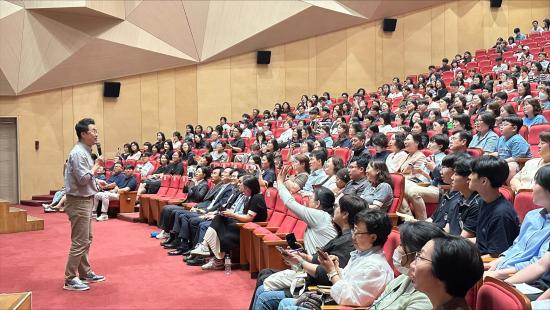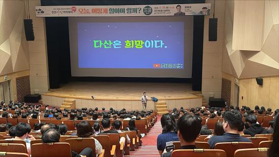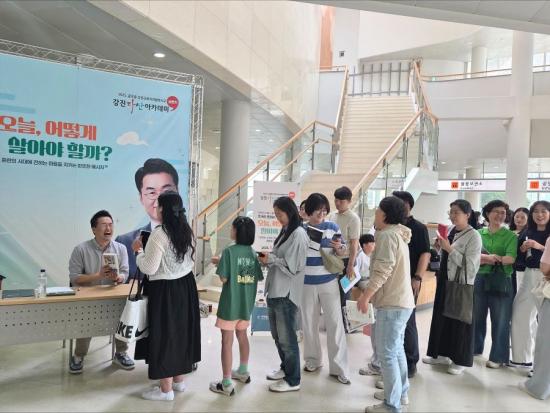 À̳¯ °¿¬Àº EBS ´ëÇ¥ Çѱ¹»ç °»çÀÌÀÚ ¡®¿ª»çÀÇ ¾µ¸ð¡¯ ÀúÀÚÀÎ ÃÖżº °»ç°¡ ¡®¿À´Ã, ¾î¶»°Ô »ì¾Æ¾ß ÇÒ±î?¡¯¶ó´Â ÁÖÁ¦·Î ÁøÇàÇß´Ù. °»ç´Â °ÁøÀ̾߸»·Î ´Ù»ê Á¤¾à¿ëÀÌ ¡º¸ñ¹Î½É¼¡», ¡º°æ¼¼À¯Ç¥¡» µî ½ÇÇÐÀÇ ÇÙ½É ÀúÀÛµéÀ» ¿Ï¼ºÇÑ Àå¼ÒÀÌÀÚ, ¼ºÂû°ú Çõ½ÅÀÌ ²ÉÇÇ¿î °ø°£ÀÓÀ» °Á¶Çß´Ù. ÀÌ¾î ¡°°ÁøÀº ´Ü¼øÇÑ À¯¹èÁö°¡ ¾Æ´Ï¶ó Çй®°ú ¼ºÂûÀÇ º»ÇâÀ̸ç, Áö±Ý ¿ì¸®¿¡°Ô »îÀÇ ¹æÇâÀ» ¹¯´Â ±³½Ç°úµµ °°´Ù¡±°í ¸»ÇØ Å« °ø°¨À» ¾ò¾ú´Ù.