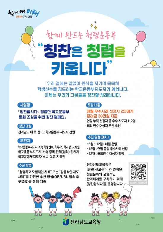 ÃÊ¡¤Áß¡¤°í Çб³¿îµ¿ºÎÁöµµÀÚ¸¦ ´ë»óÀ¸·Î Çлý, Çкθð, ±³Á÷¿ø µîÀÌ Á÷Á¢ ÃßõÇÏ´Â ÀÌ Ä·ÆäÀÎÀº ´Ü¼øÇÑ À̺¥Æ®¸¦ ³Ñ¾î û·ÅÇÑ ÁöµµÀÚ»ó Á¤¸³, Çб³¿îµ¿ºÎÀÇ Ã¼Áú °³¼±, °øÁ¤ÇÑ ½ºÆ÷Ã÷ ±³À°È¯°æ Á¶¼ºÀ̶ó´Â ±³À°Àû ÁöÇ¥¸¦ ¸¸µé¾î³»°í ÀÖ´Ù. ÁöµµÀÚÀÇ Ã»·ÅÇÑ ¾ðÇàÀº °ð ÇлýÀÇ Àμº°ú ŵµ·Î À̾îÁö¸ç, Çб³¿îµ¿ºÎÀÇ ½Å·Úµµ¸¦ ³ôÀÌ´Â ¼±¼øÈ¯ ±¸Á¶¸¦ ¸¸µé¾î³»°í ÀÖ´Ù.