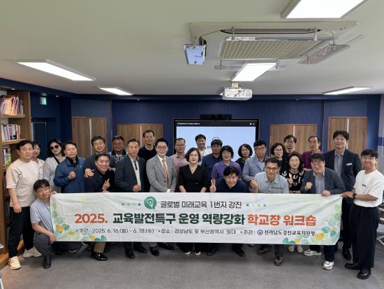 °Áø °ü³» ÃÊ¡¤Áß¡¤°í¡¤Æ¯¼öÇб³Àå 25¸íÀ» ´ë»óÀ¸·Î ÁøÇàµÈ À̹ø ¿öÅ©¼óÀº ¡®±³À°¹ßÀüƯ±¸, Çб³ÀåÀÇ ¸®´õ½ÊÀ¸·Î ½ÇÇöÇÏ´Ù¡¯¸¦ ÁÖÁ¦·Î ÇÏ°í ºÎ»ê°ú °æ³² Áö¿ªÀÇ ±³À°¹ßÀüƯ±¸ ¿ì¼ö»ç·Ê¿Í Æó±³ À§±â ±Øº¹ »ç·Ê µîÀ» Áß½ÉÀ¸·Î ÇöÀå Áß½ÉÀÇ Ã¼Çè°ú ÇùÀǸ¦ ÅëÇØ ±³À° ¸®´õ½Ê ¿ª·®À» ³ôÀÌ´Â µ¥ ÁßÁ¡À» µÎ¾ú´Ù.