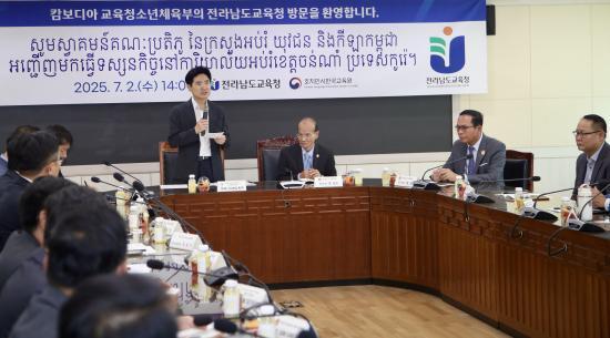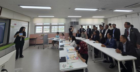 »Ö ½Î¹Ô Â÷°üº¸¸¦ ºñ·ÔÇÑ 23¸íÀÇ Ä¯º¸µð¾Æ ±³À°°è ÀλçµéÀº 7¿ù 2ÀÏ Àü³² ¿µ¾ÏÀÇ ´ëºÒÃʵîÇб³¸¦ ã¾Æ Çѱ¹¾î ÇÐ±Þ ¼ö¾÷ ÇöÀåÀ» Âü°üÇϰí, ±³½Ç¡¤Æ¯º°½Ç¡¤µµ¼°ü µî Çб³ ½Ã¼³À» µÑ·¯ºÃ´Ù. ±³Á÷¿ø ¸é´ã¿¡¼´Â ¿Ü±¹ÀÎ ÇлýÀÇ ¾ð¾î ÀûÀÀ°ú Çб³»ýȰ Áö¿øÀ» À§ÇÑ ¸ÂÃãÇü ±³À°°úÁ¤À» ¼³¸í µè°í, Çѱ¹¾î ¼ö¾÷ Æí¼º, ´Ù¹®È ÀÌÇØ±³À°, Çкθð ¼ÒÅë ¹æ¾È µî¿¡ ´ëÇÑ ÀǰßÀ» ³ª´³´Ù. įº¸µð¾Æ ¹æ¹®´ÜÀº ÀÌ ÀÚ¸®¿¡¼ ¡°Ã¼°èÀûÀÎ Çб³ ¿î¿µ°ú Çлý Áß½ÉÀÇ ±³À° ¹®È¿¡ ±íÀº ÀλóÀ» ¹Þ¾Ò´Ù.¡±°í ¸»Çß´Ù.
