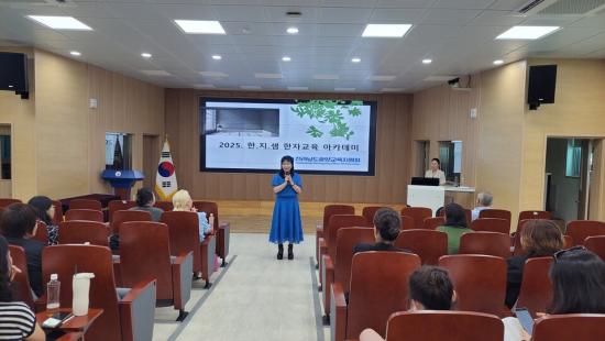 ±¤¾ç±³À°Áö¿øÃ» ±è¿©¼± ±³À°ÀåÀº ¡°ÇÑÀÚ±³À°Àº ¿ì¸® ÀüÅë ¹®È¿¡ ´ëÇÑ ÀÌÇØ¸¦ ³ôÀ̰í, »ç°íÀÇ ±íÀ̸¦ ´õÇÏ´Â ÁÖ¿ëÇÑ Àι® ±³À°ÀÇ ½ÃÀÛÁ¡ÀÌ´Ù. ¾ÕÀ¸·Îµµ Çлý°ú Áö¿ª»çȸ°¡ ÇÔ²² ¼ºÀåÇÏ´Â Àι®¼Ò¾ç ±³À°À» Áö¼ÓÀûÀ¸·Î È®´ëÇØ ³ª°¡°Ú´Ù.¡±°í ¸»Çß´Ù.