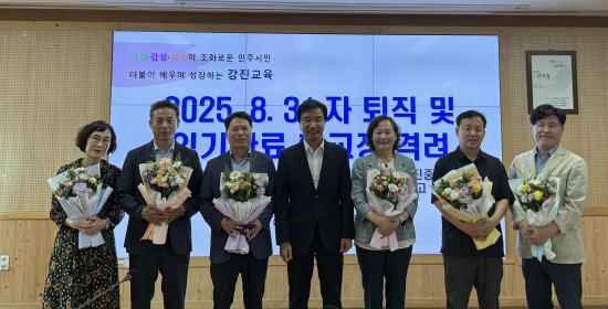 À̹ø ÇùÀÇȸ¿¡¼´Â ¿À´Â 8¿ù ¸» ÅðÁ÷À» ¾ÕµÐ ±³Àå 7¸í¿¡ ´ëÇÑ °¨»ç¿Í °Ý·Á Çà»çµµ ÇÔ²² ¿·Á µû¶æÇÑ ºÐÀ§±â¸¦ ´õÇß´Ù. Çб³ÀåµéÀº ÇÔ²² Áö¿ª ±³À°À» À̲ø¾î ¿Â µ¿·á ±³Àå¿¡°Ô ¾Æ³¦¾ø´Â ¹Ú¼ö¸¦ º¸³Â´Ù.