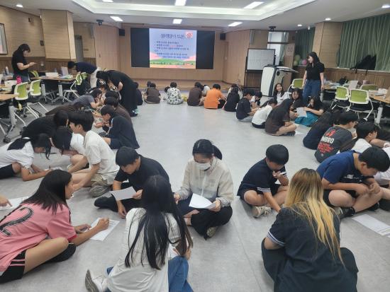 [½Åµ¿¾Æ¹æ¼Û Àü³²Áøµµ=À̽ŵ¿±âÀÚ] Àü¶ó³²µµÁøµµ±³À°Áö¿øÃ»Àº 7¿ù 11ÀÏ(±Ý), Áøµµ±³À°Áö¿øÃ» ´ëȸÀǽǿ¡¼­ °ü³» ÃʵîÇб³ 6ÇÐ³â ¹× ÁßÇб³ 1Çгâ Çлý 50¸íÀ» ´ë»óÀ¸·Î ±âÈÄÀ§±â¸¦ ÁÖÁ¦·Î ÇÑ ½ÉÃþ µ¶¼­Åä·Ð ÇÁ·Î±×·¥ ¡®50ÀÎÀÇ Áö±¸ÇÏ´Â µ¶¼­Åä·Ð¡¯À» ¿î¿µÇß´Ù.
