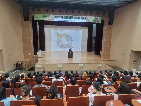 Ư°Àº ¡®»ýÅÂÀû Àüȯ, ±âÈÄ ¹× »ý¹°´Ù¾ç¼º À§±â¡¯¸¦ ÁÖÁ¦·Î ÀÌÈ¿©ÀÚ´ëÇб³ ÃÖÀçõ ¼®Á±³¼ö°¡ Á÷Á¢ °¿¬¿¡ ³ª¼, ±âÈÄÀ§±âÀÇ º»Áú°ú »ý¹°´Ù¾ç¼ºÀÇ Á߿伺, ±×¸®°í Àΰ£°ú ÀÚ¿¬ÀÇ °øÁ¸À» À§ÇÑ ±³À°ÀÇ ¿ªÇÒ¿¡ ´ëÇØ ÅëÂû·Â ÀÖ´Â ¸Þ½ÃÁö¸¦ ÀüÇß´Ù. °¿¬ ÇöÀå¿¡¼ ±×°£ÀÇ »ýű³À° ½ÇõÀ» µÇµ¹¾Æº¸´Â ÇÑÆí, ¹Ì·¡ ¼¼´ë¸¦ À§ÇÑ Ã¥ÀÓ ÀÖ´Â ±³À° ½Çõ ÀÇÁö¸¦ ´ÙÁö´Â ¶æ±íÀº ½Ã°£À» °¡Á³´Ù.