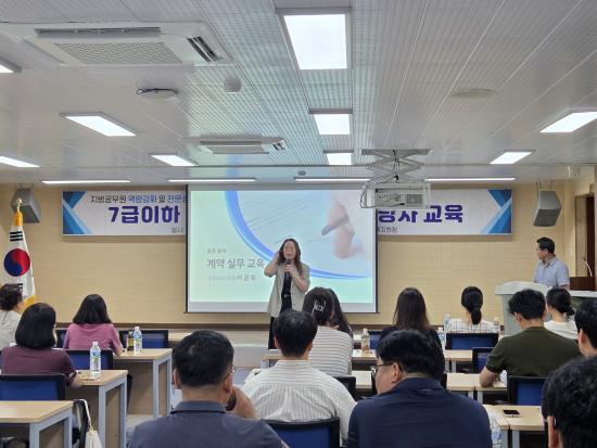 ±³À°¿¡´Â °íÈï±³À°Áö¿øÃ» ¹× °ü³» °¢±Þ Çб³¿¡¼ °è¾à¾÷¹«¸¦ ´ã´çÇϰí ÀÖ´Â 7±Þ ÀÌÇÏ ÀϹÝÁ÷°ø¹«¿ø 50¿© ¸íÀÌ Âü¿©Çß´Ù. ¹°Ç°¡¤¿ë¿ª¡¤°ø»ç °è¾à ½Ç¹« Àü¹Ý¿¡ ´ëÇÑ ÀÌ·Ð °ÀÇ¿Í ÇÔ²², ½ÇÁ¦ »ç·Ê¸¦ Áß½ÉÀ¸·Î ÇÑ ½Ç½ÀÇü ÇÁ·Î±×·¥À¸·Î ±¸¼ºÇØ ½Ç¹« ´É·Â Çâ»ó¿¡ ÃÊÁ¡À» ¸ÂÃè´Ù.