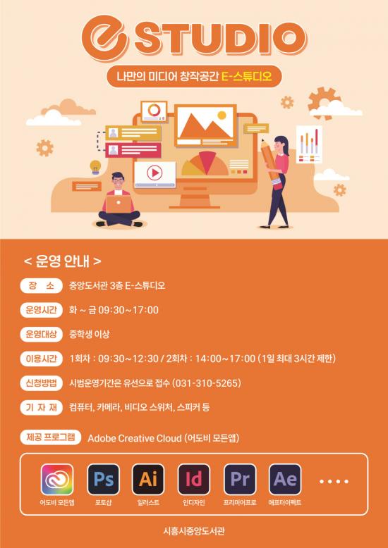 ½ÃÈï½ÃÁß¾Óµµ¼°ü ¡®e-½ºÆ©µð¿À¡¯´Â PC, Ä·ÄÚ´õ, ºñµð¿À ĸó Àåºñ, Á¶¸í, ¸¶ÀÌÅ©, ¿Àµð¿À ÀÎÅÍÆäÀ̽º µî ´Ù¾çÇÑ Àåºñ¸¦ °®Ãß°í ÀÖ¾î °íǰÁú ¿µ»ó ÆíÁý°ú Á¦ÀÛ, À¯Æ©ºê ¼ÛÃâ, À¥ ¾÷·Îµå±îÁö °¡´ÉÇÑ º¹ÇÕ ¹Ìµð¾î Á¦ÀÛ °ø°£ÀÌ´Ù.