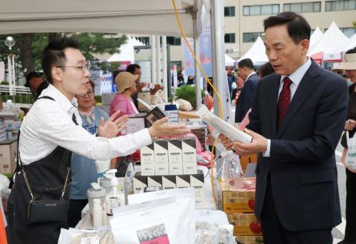 Àü±¹ 40¿© ÁöÀÚü¿Í 80¿© ³ó°¡°¡ Âü¿©ÇÑ °¡¿îµ¥ 60¿© °³ ºÎ½º¿¡¼­ Çѿ졤»ç°ú µî ¸íÀý ¼º¼öǰ ÆÇ¸ÅÇß´Ù.