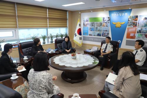 ¡Û ÀÌ ÀÚ¸®¿¡¼ ÀÓ¿ø¼· ¼Ò¹æº»ºÎÀåÀº ÀÎõ¼Ò¹æ°ø¹«¿øÀÇ ¸¶À½°Ç° °ü¸®¿Í ÁõÁøÀ» À§ÇØ ¹ã³·À¸·Î ³ë·ÂÇØ ÁֽŠÀü¹®»ó´ã»çÀÇ ³ë°í¿¡ °¨»çÀÇ ¸¶À½À» ÀüÇßÀ¸¸ç ¼Ò¹æ°ø¹«¿øÀÇ ¸¶À½°Ç° °ü¸®¿Í Á÷¿øµéÀÇ Âü¿©µµ ÁõÁø ¹æ¾È¿¡ ´ëÇÑ Àü¹®»ó´ã»çÀÇ ÀǰßÀ» ûÃëÇß´Ù.