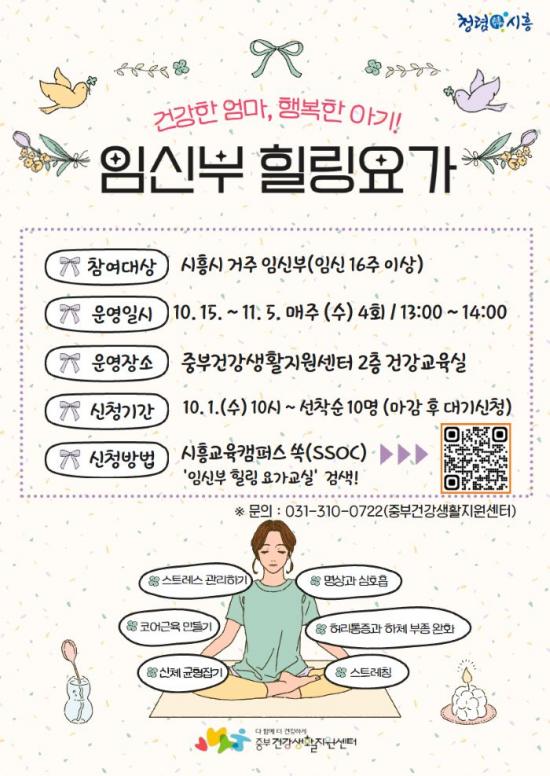 ¿ä°¡ ±³½ÇÀº ¸ÅÁÖ ¼ö¿äÀÏ ¿ÀÈÄ 1½ÃºÎÅÍ 2½Ã±îÁö Áߺΰǰ»ýȰÁö¿ø¼¾ÅÍ 2Ãþ °Ç°±³À°½Ç¿¡¼ ÁøÇàµÈ´Ù. Âü¿© Èñ¸ÁÀÚ´Â 10¿ù 1ÀϺÎÅÍ ½ÃÈï±³À°Ä·ÆÛ½º ½ï(SSOC)À» ÅëÇØ ¹«·á·Î ½ÅûÇÒ ¼ö ÀÖÀ¸¸ç, ¸ðÁý ¸¶°¨ ÈÄ¿¡´Â ´ë±â ½Åûµµ °¡´ÉÇÏ´Ù.