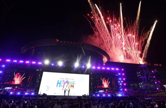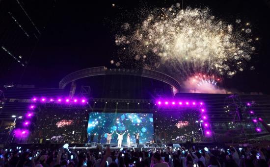 ¼öõ ¸íÀÇ °ü°´ÀÌ ÀÀ¿øºÀÀ» Èçµé¸ç ¿±â¿¡ ÀÀ´äÇß°í, ¹«´ë À§ Á¶¸í°ú ´ëÇü LED ½ºÅ©¸°, ¹ãÇÏ´ÃÀ» ¼ö³õÀº ºÒ²É³îÀ̰¡ ¾î¿ì·¯Á® ÃàÁ¦ ºÐÀ§±â¸¦ ÀýÁ¤À¸·Î ²ø¾î¿Ã·È´Ù