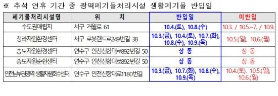 ÀÎõ½Ã´Â ¿¬ÈÞ ±â°£ »ýȰ¾²·¹±â Àûü·Î ÀÎÇÑ ½Ã¹Î ºÒÆíÀ» ÃÖ¼ÒÈÇϱâ À§ÇØ ±º¡¤±¸¿¡¼ ¹ÝÀÔÇÏ´Â »ýȰ¾²·¹±â ±¤¿ªÆó±â¹°Ã³¸®½Ã¼³ ¹ÝÀÔ ÀÏÁ¤À» º°µµ·Î ÁöÁ¤ÇÏ¿© ¿î¿µÇÑ´Ù.
