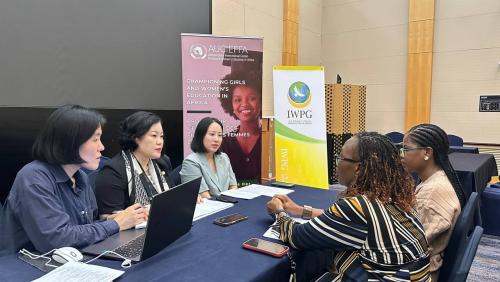 À̼¿¬ ±Û·Î¹ú 2±¹ÀåÀº ¡°AU¿ÍÀÇ ¿¬°è´Â IWPG ¼¼°è ÆòÈ ³×Æ®¿öÅ© È®ÀåÀÇ Áß¿äÇÑ ¹ßÆÇ¡±À̶ó¸ç ¡°Áö¼Ó °¡´ÉÇÑ Çù·Â ü°è¸¦ ±¸ÃàÇØ ±¹Á¦»çȸ°¡ ÁÖ¸ñÇÒ ¸¸ÇÑ ¿©¼º ÁÖµµ ÆòÈ ¸ðµ¨À» ÇÔ²² ¸¸µé¾î°¡ÀÚ¡±°í °Á¶Çß´Ù.