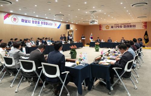 °æ±âµµ½Ã¡¤±ºÀÇȸÀÇÀåÇùÀÇȸ°¡ ÁÖÃÖÇϰí Çϳ²½ÃÀÇȸ°¡ ÁÖ°üÇÑ À̹ø Á¤·ÊȸÀÇ´Â µ¿µÎõ½ÃÀÇȸ ±è½ÂÈ£ ÀÇÀåÀ» ºñ·ÔÇØ ºÎȸÀåÀÎ À¯Áø¼± ¿ëÀÎÆ¯·Ê½ÃÀÇȸ ÀÇÀå, ±è¿î³² °í¾çƯ·Ê½ÃÀÇȸ ÀÇÀå, Á¶¼º´ë ³²¾çÁÖ½ÃÀÇȸ ÀÇÀå µî 25¸íÀÌ Âü¼®Çß´Ù. ¶ÇÇÑ ÀÌÇöÀç Çϳ²½ÃÀåµµ Á÷Á¢ ȸÀÇÀåÀ» ã¾Æ °¢ ½Ã¡¤±ºÀÇȸ ÀÇÀåÀ» ȯ¿µÇß´Ù.