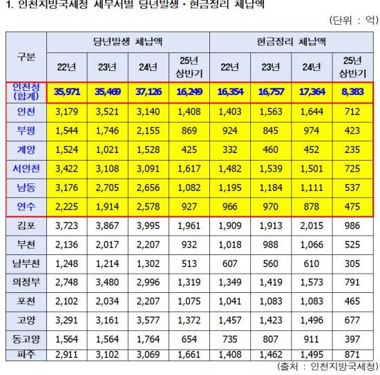 ÀÎõÁö¹æ±¹¼¼Ã»ÀÌ »ç½Ç»ó ¡¼ö¸¦ Æ÷±âÇÑ ¼¼±ÝÀÌ 14Á¶3,000¾ï ¿ø¿¡ ´ÞÇÑ´Ù°í ¹àÇû´Ù. ÃÖ±Ù 3³â µ¿¾È ¸Å´Þ Æò±Õ 360¾ï ¿ø¾¿ ´Ã¾î³ª°í ÀÖÀ¸¸ç, ÀÌ´Â ÀÎõ½Ã 1³â ¿¹»ê¿¡ ÇØ´çÇÏ´Â ¼öÁØÀÌ´Ù.