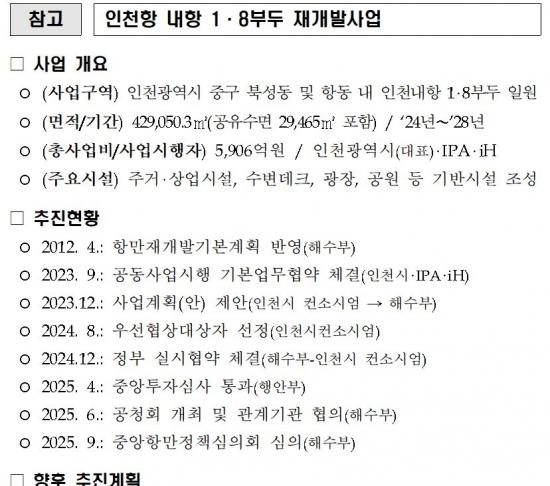 À̹ø »ç¾÷Àº Ç׸¸ ±â´ÉÀ» »ó½ÇÇÑ ³»Ç× 1‧8ºÎµÎ¸¦ ÇØ¾ç¹®È µµ½É °ø°£À¸·Î Àç°³¹ßÇÏ´Â °ÍÀ¸·Î 2023³â 12¿ù ÀÎõ½ÃÄÁ¼Ò½Ã¾ö(ÀÎõ½Ã, ÀÎõÇ׸¸°ø»ç, ÀÎõµµ½Ã°ø»ç)ÀÌ Á¦ÃâÇÑ »ç¾÷ °èȹ(¾È)ÀÌ Á¤ºÎÇù»ó°ú Àü¹®°¡ ÀÚ¹®È¸ÀÇ µîÀ» °ÅÃÄ ÃÖÁ¾ÀûÀ¸·Î »ç¾÷°èȹÀ» ¼ö¸³ÇÏ¿´´Ù.