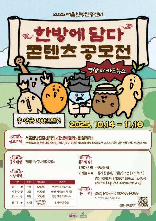 À̹ø °ø¸ðÀüÀº ¿ÃÇØ »õ·Ó°Ô ź»ýÇÑ Ä³¸¯ÅÍ ¡®ÇѹæÆÐ¹Ð¸®(³ì¿ëÀÌ, ´ë°¨, ¾àÅÁÀÌ, ÀλïÀÌ, Àý±¸, ÁÖ¸Ó´Ï)¡¯ ¸¦ ³Î¸® ¾Ë¸®°í, ´ëÁßÀÇ Ã¢ÀÇÀûÀÎ ¾ÆÀ̵ð¾î¸¦ ÅëÇØ ij¸¯ÅÍ¿Í ÇÑÀÇÇÐÀ» ¸Å·ÂÀ» ¾Ë¸®°íÀÚ ¸¶·ÃµÆ´Ù.
