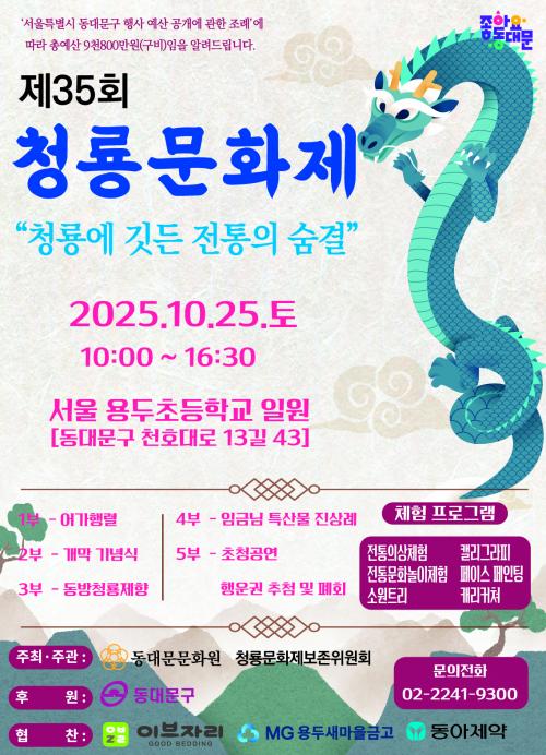 ÀÌÇÊÇü µ¿´ë¹®±¸Ã»ÀåÀº ¡°Ã»·æ¹®ÈÁ¦´Â Á¶¼±½Ã´ë ÀÓ±ÝÀÌ Á÷Á¢ Âü¿©Çß´ø ±â¿ìÁ¦¸¦ Áö¿ªÀÇ ¼ÕÀ¸·Î µÇ»ì¸° ¶æ±íÀº Çà»ç¡±¶ó¸ç, ¡°¿ÃÇØ´Â Á¤½Ä ¾î°¡Çà·Ä ºÎȰÀ» ÅëÇØ ¿ª»çÀû Àǹ̸¦ ´õÇϰí, ¾ÆÀÌ¿Í °¡Á·ÀÌ ÇÔ²² Áñ±æ ¼ö ÀÖ´Â ´Ùä·Î¿î üÇè ÇÁ·Î±×·¥À¸·Î ÀüÅë°ú Çö´ë°¡ °øÁ¸ÇÏ´Â ¹®Èµµ½Ã µ¿´ë¹®±¸ÀÇ ¸Å·ÂÀ» ´À³¥ ¼ö ÀÖÀ» °Í¡±À̶ó°í ÀüÇß´Ù.