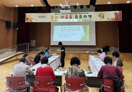 15ÀÏ¿¡´Â ¾Ï ȯÀÚ ½º½º·Î°¡ °Ç°°ü¸® ´É·ÂÀ» Çâ»óÇϱâ À§ÇÑ ¸²ÇÁ ¼øÈ¯ ¿îµ¿°ú ¸¸¼ºÁúȯ°ü¸®¼¾ÅÍ ¿¬°è ¿µ¾ç±³À°ÀÌ ÁøÇàµÆÀ¸¸ç, 22ÀÏ¿¡´Â Âü¿©ÀÚµéÀÇ ½É¸®Àû ¾ÈÁ¤°ú ½Åü ȸº¹À» µµ¸ðÇϱâ À§ÇÑ ¼Õ¼ö°Ç ²Ù¹Ì±â µî °ø¿¹È°µ¿°ú ÀÛ¾÷Ä¡·á»ç¿Í ÇÔ²²ÇÏ´Â °Ç°¿îµ¿ÀÌ ÁøÇàµÆ´Ù.