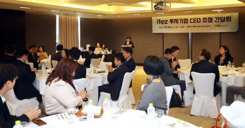 °£´ãȸ¿¡´Â IFEZ¿¡ ÀÔÁÖÇÑ ÁÖ¿ä ÅõÀÚ±â¾÷ CEO¿Í °ü°èÀÚ µî ÃÑ 40¿©¸íÀÌ Âü¼®ÇßÀ¸¸ç, ûÀå ȯ¿µ»ç, ÅõÀÚÀ¯Ä¡ ±Û·Î¹ú °æÁ¦µ¿Çâ ¹ßÇ¥, ±â¾÷ ÀǰßûÃë ¹× ³×Æ®¿öÅ· ¼øÀ¸·Î ÁøÇàµÆ´Ù.