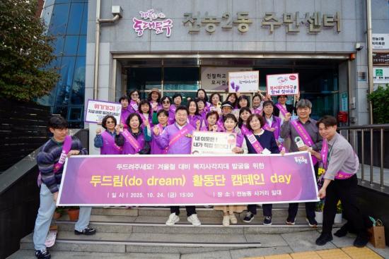 Âü¿©ÀÚµéÀº Àü³óµ¿ »ç°Å¸® ÀÏ´ë À¯µ¿Àα¸°¡ ¸¹Àº Áö¿ª°ú »ýȰ¹ÐÂø ¾÷Á¾À» Áß½ÉÀ¸·Î º¹Áö»ç°¢Áö´ë ¹ß±¼ È«º¸ Ä·ÆäÀÎÀ» Àü°³Çß´Ù. ¶ÇÇÑ À§±â°¡±¸ ½Å°íÀÚ Æ÷»ó±Ý Á¦µµ¿Í Àϻ󵹺½ ¼ºñ½º µî ±¸ÀÇ º¹Áö»ç¾÷À» Àû±Ø È«º¸Çϸç ÁֹεéÀÇ Âü¿©¸¦ À¯µµÇß´Ù.