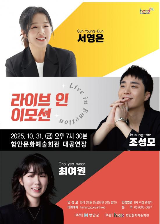 ÇԾȹ®È¿¹¼úȸ°ü °ü°èÀÚ´Â ¡°À̹ø Á¶¼º¸ð¡¤¼¿µÀº¡¤ÃÖ¿©¿øÀÇ ¡®¶óÀ̺ê ÀÎ À̸ð¼Ç(Live in Emotion)¡¯ ÄܼƮ´Â ±º¹Î°ú ÇÔ¾ÈÀ» ã¾ÆÁֽаü°´µé¿¡°Ô °¡À»¹ãÀÇ ³¶¸¸À» ¼±»çÇϰí ÀØÁö ¸øÇÒ Ãß¾ïÀ» ÀüÇϰíÀÚ ±âȹµÆ´Ù¡±¸ç ¡°°¡Á·, ¿¬ÀÎ, Ä£±¸¿Í ÇÔ²² ±í¾î°¡´Â °¡À»ÀÇ Á¤Ã븦 ¸¸³£ÇÏ½Ã±æ ¹Ù¶õ´Ù¡±°í ¸»Çß´Ù.