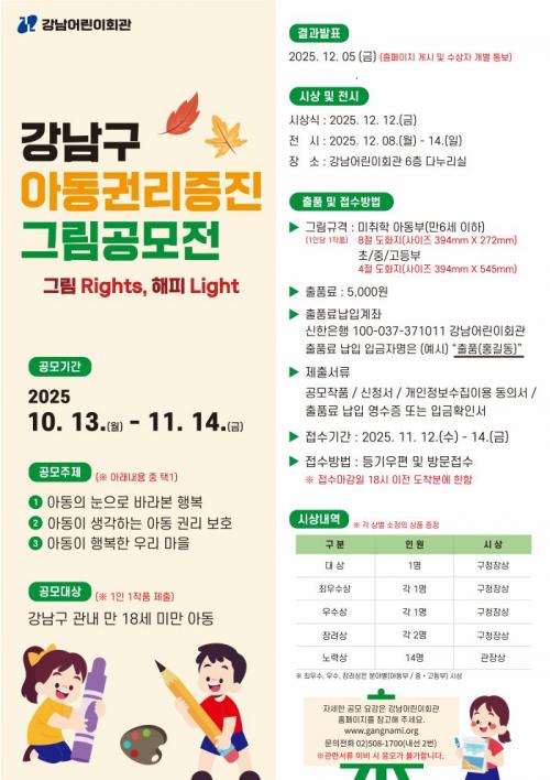 °ø¸ð ÁÖÁ¦´Â ¡ã¾Æµ¿ÀÇ ´«À¸·Î ¹Ù¶óº» Çູ(³»°¡ °¡Àå ÇູÇÑ ¼ø°£, ³»°¡ ¿øÇÏ´Â ¿ì¸® µ¿³× »ó»ó ³îÀÌÅÍ) ¡ã¾Æµ¿ÀÌ »ý°¢ÇÏ´Â ¾Æµ¿ ±Ç¸® º¸È£(¾ÆÀ̵éÀÌ Á¸Áß¹Þ´Â ¼¼»ó, ¾ÆÀ̵éÀÌ ¾ÈÀüÇϰí ÇູÇÑ ¼¼»ó) ¡ã¾Æµ¿ÀÌ ÇູÇÑ ¿ì¸® ¸¶À»(³»°¡ ²Þ²Ù´Â °³²ÀÇ ¸ð½À, ¾î¸¥µéÀÌ ¿ì¸®¸¦ ÁöÄÑÁáÀ¸¸é ÇÒ ¶§) µî 3°¡Áö Áß ÇÑ °¡Áö¸¦ ¼±ÅÃÇØ Âü¿©ÇÒ ¼ö ÀÖ´Ù. ¹ÌÃëÇÐ ¾Æµ¿Àº 8ÀýÁö, ÃÊ¡¤Áß¡¤°íµîºÎ´Â 4ÀýÁö ±Ô°Ý¿¡ ¸ÂÃç ±×¸²À» Á¦ÃâÇÏ¸é µÈ´Ù.