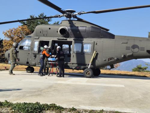 ¡Û À̾î À°±ºÇ×°ø»ç·ÉºÎ Àǹ«ÈļÛÇ×°ø´ë°¡ Ã⵿ Áö½Ã¸¦ ¹Þ°í ¸Þµð¿Â Çï±â¸¦ Æí¼º, °È±º ÇÏÁ¡¸é ÇØº´´ë Á¦2»ç´Ü Çï±âÀåÀ¸·Î À̵¿ÇÏ¿´´Ù. ±³µ¿ ±¸±Þ´ë°¡ ȯÀÚ¸¦ ÀΰèÇÏ°í ¸Þµð¿Â Çï±â´Â ÀÇ·á±â°üÀ¸·Î ±ä±Þ À̼ÛÇϸç ÈÆ·ÃÀÌ ¸¶¹«¸®µÆ´Ù.