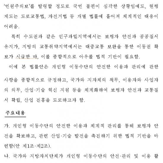 ¶ÇÇÑ Á¤ ÀÇ¿øÀº¡°À̹ø ¹ý¾È ¹ßÀǸ¦ °è±â·Î, º¸´Ù ½ÇÁúÀûÀ̸ç ÇöÀå¿¡ ¹Ù·Î Àû¿ë°¡´ÉÇÑ Ãß°¡ °³¼±Ã¥À» Á¶¼ÓÈ÷ ¸¶·ÃÇϱâ À§ÇØ ¿¬³»¿¡ °ü°è±â°ü¡¤ÁöÀÚü µî°ú ÇÔ²²¡®°³ÀÎÇü À̵¿¼ö´Ü ¾ÈÀü°ü¸® °£´ãȸ¡¯¸¦ °³ÃÖÇÒ ¿¹Á¤¡±À̶ó¸ç,¡°ÇöÀåÀÇ ¸ñ¼Ò¸®¸¦ ¹Ý¿µÇÑ ½ÇÈ¿¼ºÀÖ´Â ¹æ¾ÈÀ» °³¹ßÇØ ±¹¹ÎÀÌ Ã¼°¨ÇÒ ¼ö ÀÖ´Â °³ÀÎÇü À̵¿¼ö´Ü ¾ÈÀüÁ¤Ã¥À¸·Î À̾°Ú´Ù¡±°í µ¡ºÙ¿´´Ù.