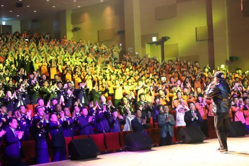 ¡Û À̳¯ ±â³ä½ÄÀÇ ÇÏÀ̶óÀÌÆ®´Â °¡¼ö ¹Ú»ó¹ÎÀÇ Æ¯º° ÃàÇϰø¿¬À̾ú´Ù. ¹Ú»ó¹ÎÀº ¼Ò¹æ´ë¿øÀ» À§ÇÑ ¹«·á °ø¿¬À» ÆîÄ¡°í, Ä¿ÇÇÂ÷¸¦ Á÷Á¢ ÁغñÇØ ¼Ò¹æ°üµé¿¡°Ô °¨»çÀÇ ¸¶À½À» ÀüÇß´Ù. ±×´Â ´ëÇ¥°î ¡®Çعٶó±â¡¯, ¡®ÁöÁßÇØ¡¯, ¡®³Ê¿¡°Ô·Î °¡´Â ±æ¡¯, ¡®Ã»¹ÙÁö ¾Æ°¡¾¾¡¯ µîÀ» ¿­Ã¢ÇØ Çà»çÀåÀÇ ºÐÀ§±â¸¦ ¶ß°Ì°Ô ´Þ±É´Ù. °ø¿¬À» ¸¶Ä£ ±×´Â ¡°¼Ò¹æ°üÀÇ Çå½Å¿¡ ´Ã °¨»çµå¸°´Ù¡±¸ç ¡°È­Àç Ãë¾à°èÃþÀ» À§ÇØ ¾ÈÀü¹°Ç°À» ±âºÎÇϰڴ١±°í ¹àÇô Å« ¹Ú¼ö¸¦ ¹Þ¾Ò´Ù.