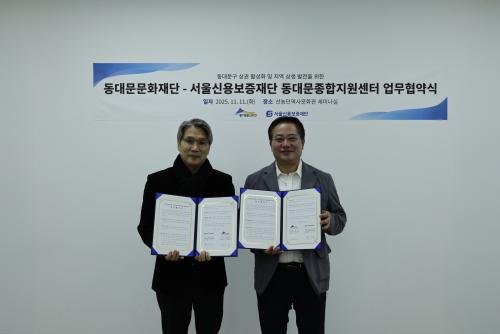 µ¿´ë¹®¹®ÈÀç´Ü¡¤¼¿ï½Å¿ëº¸ÁõÀç´Ü µ¿´ë¹®Á¾ÇÕÁö¿ø¼¾ÅÍ, Áö¿ª »ó±Ç Ȱ¼ºÈ ¹× ¹®È¿¹¼ú »ó»ý¹ßÀü ¾÷¹«Çù¾à ü°á