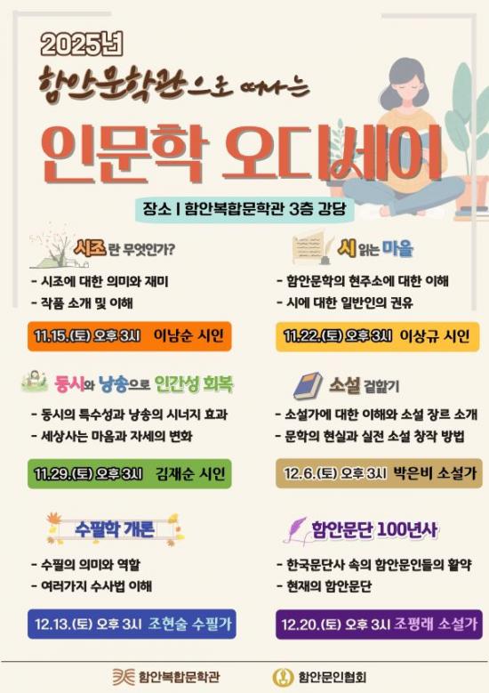 ¶Ç ¹®ÇÐÀû ÀÌÇØ¿Í Àι®ÇÐÀû ¼Ò¾çÀ» ÇÔ²² ½×À» ¼ö ÀÖ´Â ¡®Áö¿ª ¹®ÀÎ ÃÊû Àι®ÇÐ °Á¡¯°¡ 11¿ù 15ÀϺÎÅÍ 12¿ù 20ÀϱîÁö ¸ÅÁÖ Åä¿äÀÏ ¿ÀÈÄ 3½Ã¿¡ ÁøÇàµÈ´Ù. ÇÔ¾È Áö¿ª ¹®ÀεéÀÌ Á÷Á¢ µé·ÁÁÖ´Â »ý»ýÇÑ À̾߱â¿Í ÀÛǰ ¼¼°è¸¦ ¸¸³¯ ¼ö ÀÖ´Â ÀÚ¸®´Ù.