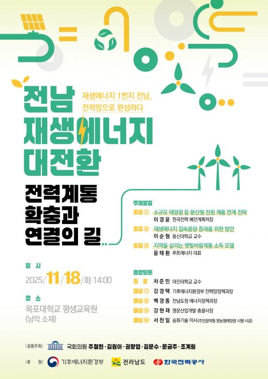 ÁÖöÇö ÀÇ¿øÀº ¡°Àü³²ÀÌ Åº¼ÒÁ߸³°ú ¿¡³ÊÁö ÀüȯÀÇ ½ÅÀç»ý¿¡³ÊÁö Çãºê·Î µµ¾àÇϱâ À§Çؼ´Â ±¹°¡ Àü·Â¸Á È®Ãæ ·Îµå¸Ê¿¡ Áö¿ªÀÇ Çö½Ç°ú ¿ä±¸°¡ ¹Ý¿µµÅ¾ß ÇÑ´Ù¡±¸ç ¡°À̹ø Åä·Ðȸ¸¦ ÅëÇØ ±¹È¸¡¤Á¤ºÎ¡¤ÁöÀÚü°¡ Çù·ÂÇÏ´Â Áö¼Ó°¡´ÉÇÑ Àü³²Çü ¿¡³ÊÁö »ýÅÂ°è ±â¹ÝÀÌ ¸¶·ÃµÇ¾î¾ß ÇÑ´Ù¡±°í °Á¶Çß´Ù.