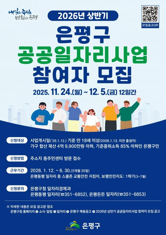 ¼±¹ßµÈ Âü¿©ÀÚ´Â 2026³â 1¿ù 12ÀϺÎÅÍ ±¸Ã» ¹× °ü³» 16°³ µ¿Áֹμ¾ÅÍ µî¿¡¼ ±Ù¹«ÇÏ°Ô µÈ´Ù. ÀÓ±ÝÀº 2026³â ÃÖÀúÀÓ±ÝÀ¸·Î ½Ã°£´ç 10,320¿øÀÌ Áö±ÞµÇ¸ç, 4´ë º¸Çè °¡ÀÔ, ÁÖÈÞ¼ö´ç, ¿ùÂ÷¼ö´ç, °£½Äºñ µî ´Ù¾çÇÑ º¹¸®ÈÄ»ýµµ Á¦°øµÈ´Ù.