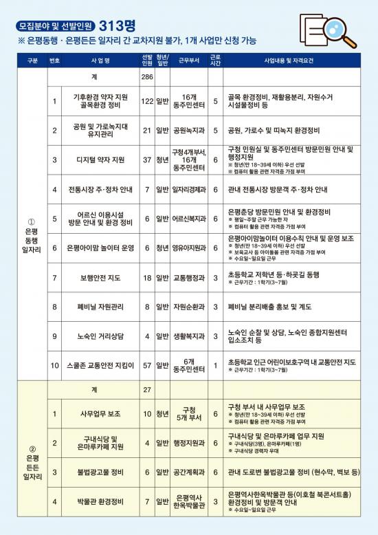 ¸ðÁý ±â°£Àº ¿À´Â 24ÀϺÎÅÍ ³»´Þ 5ÀϱîÁö·Î, ÃÑ 12ÀÏÀÌ´Ù. ¸ðÁý ÀοøÀº ¡ãÀºÆòµ¿Çà ÀÏÀÚ¸® 286¸í ¡ãÀºÆòµçµç ÀÏÀÚ¸® 27¸íÀ¸·Î ÃÑ 313¸íÀÌ´Ù.