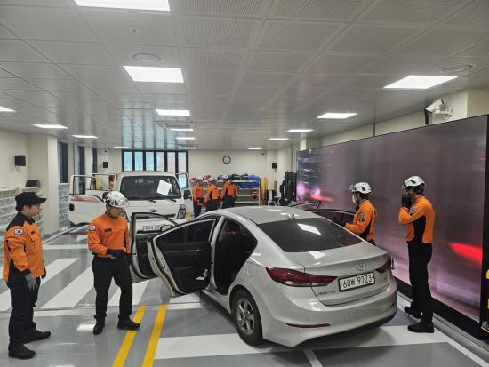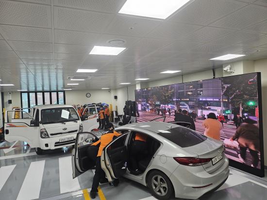 »ç°íÇöÀå½Ç½ÀÀåÀº °¡·Î 19.8m, ¼¼·Î 8.4m ±Ô¸ðÀÇ °ø°£¿¡ ¿Õº¹ 4Â÷¼± µµ·Î ¿Í Ⱦ´Üº¸µµ¸¦ Á¶¼ºÇϰí, ´ëÇü LED ½ºÅ©¸°À» ÅëÇØ ±³Åë»ç°í¡¤ÈÀç ÇöÀå µîÀÇ ¿µ»óÀ» ±¸ÇöÇØ ½Ç°¨Çü ÈÆ·ÃÀÌ °¡´ÉÇϵµ·Ï Çß´Ù. ¶Ç ÇÑÂÊ¿¡´Â ö°ñ±¸Á¶ÀÇ °ø»çÇöÀåÀ» º°µµ·Î ±¸ÃàÇØ Ãß¶ô¡¤³«ÇϹ° µî °ø»çÀå »ç°í ´ëÀÀ ÈÆ·Ãµµ º´ÇàÇÒ ¼ö ÀÖ´Ù.